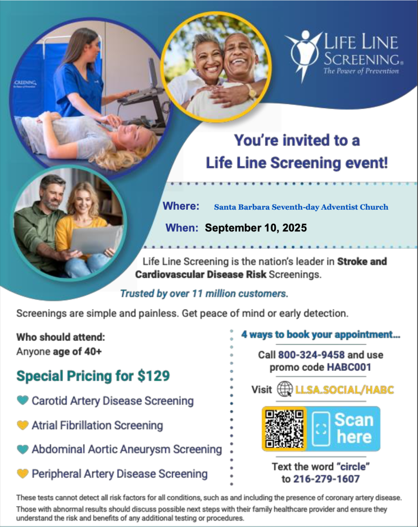 Life Line Screening will be at the Santa Barbara Church to perform Health Screenings for the community.
