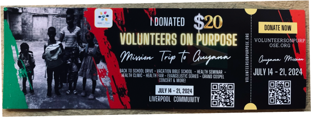 Pray for the Volunteers on Purpose as they travel to Guyana to spread the gospel through: